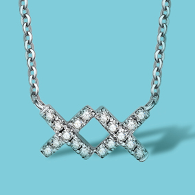 X英文字母,鑲嵌9+9個(gè)鉆石的項(xiàng)鏈。